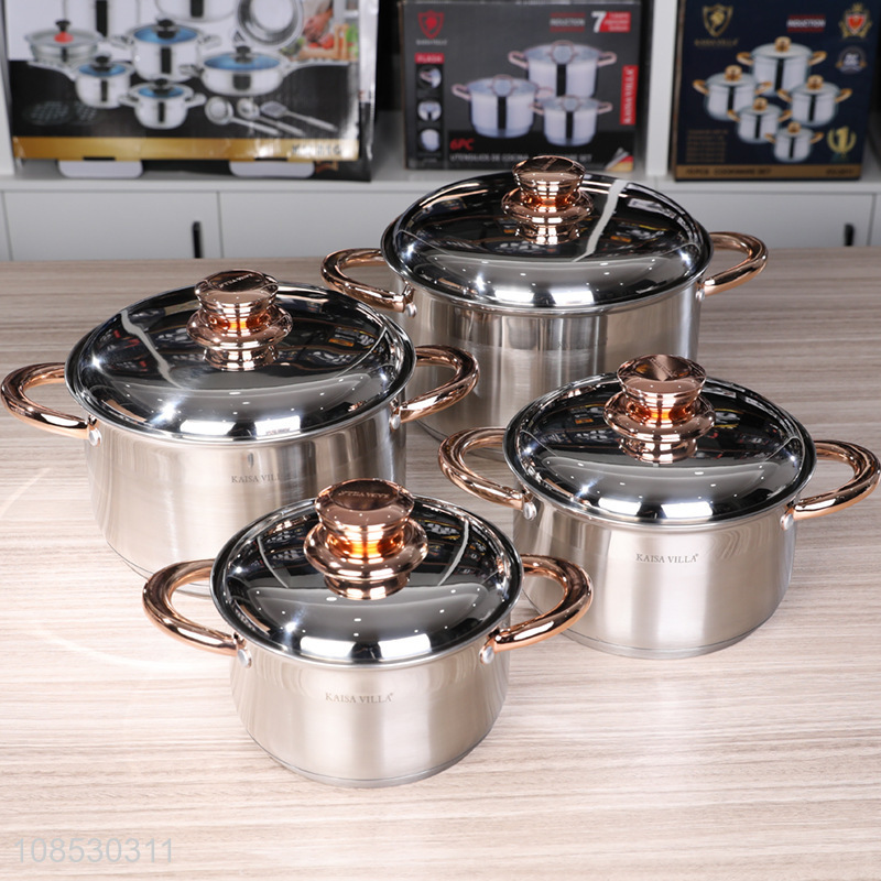 Wholesale 4pcs stainless steel soup pot stock pot household cookware set