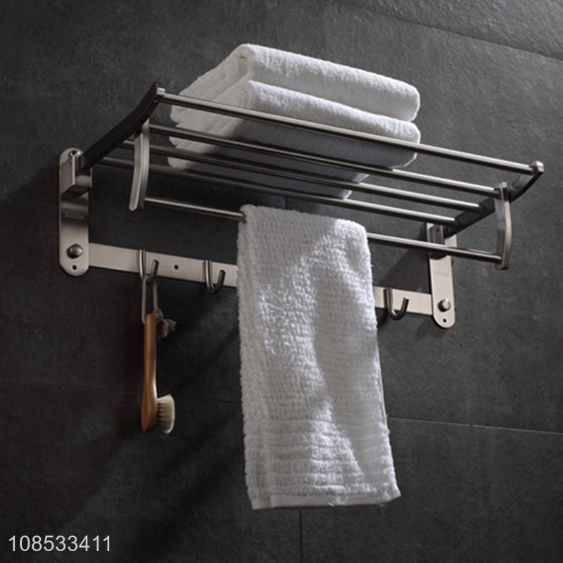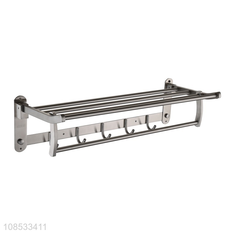 High quality wall mounted stainless steel folding bathroom shelf towel rack