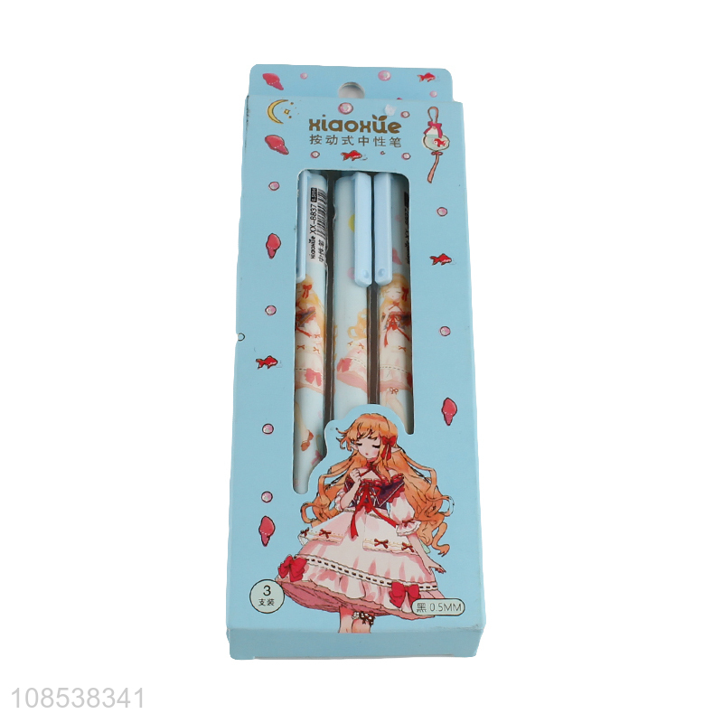 Wholesale 0.5mm black ink press type plastic gel ink pen set