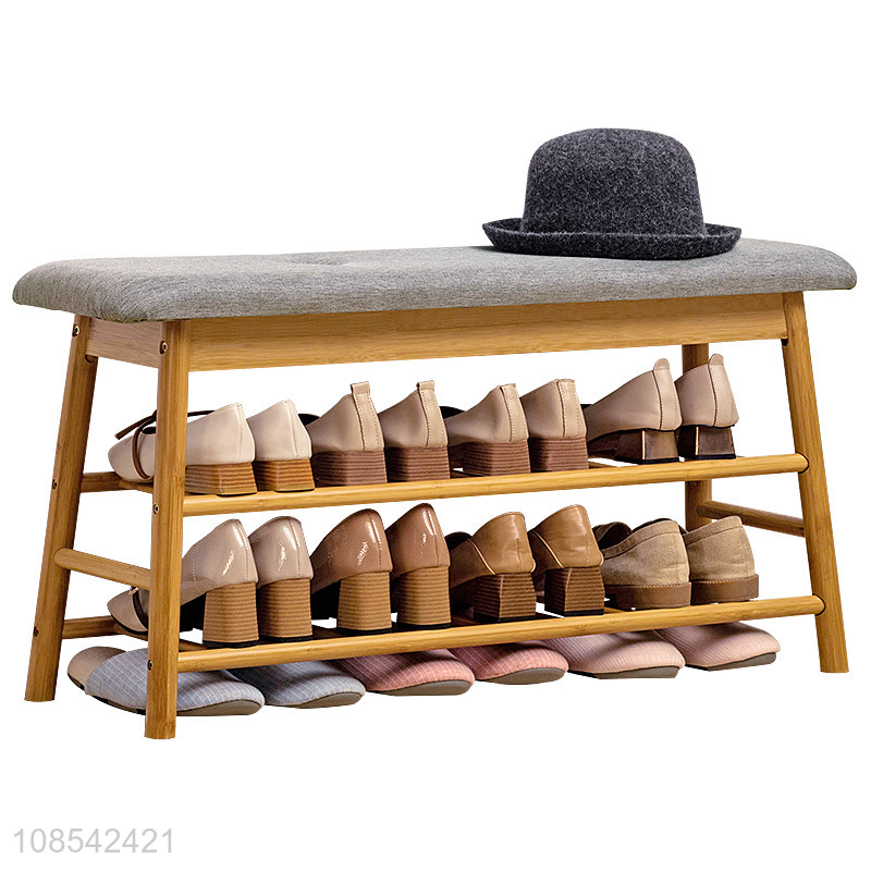 Wholesale household multi-layered space saving bamboo shoe rack bench