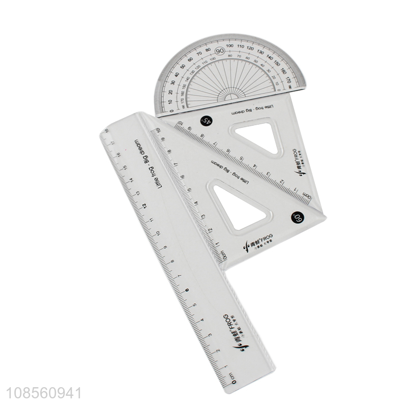 Wholesale 4pcs clear plastic ruler math set with protractor