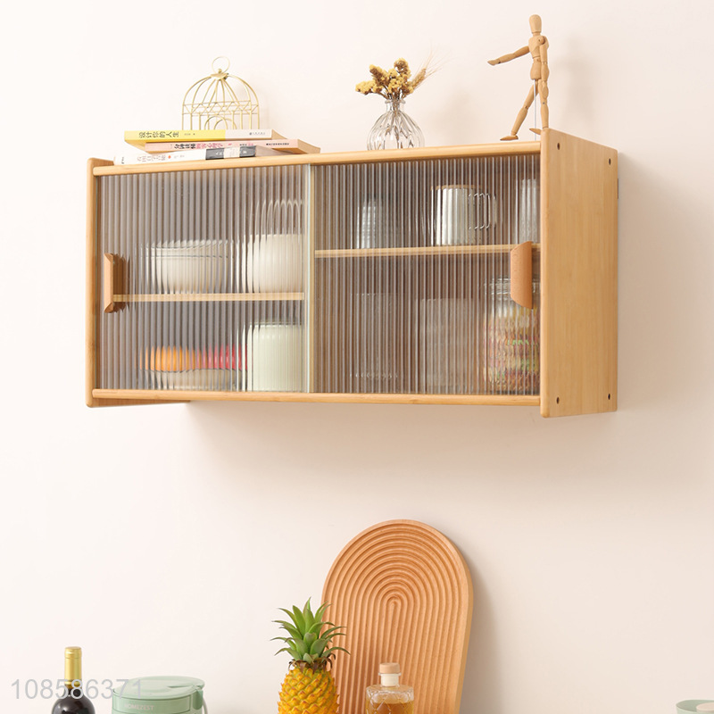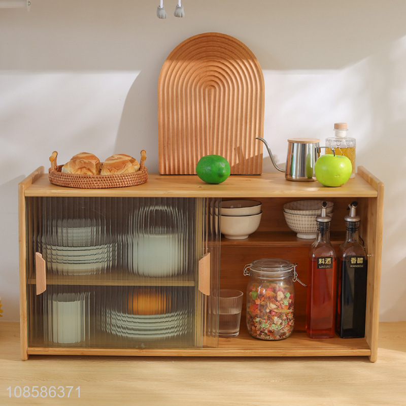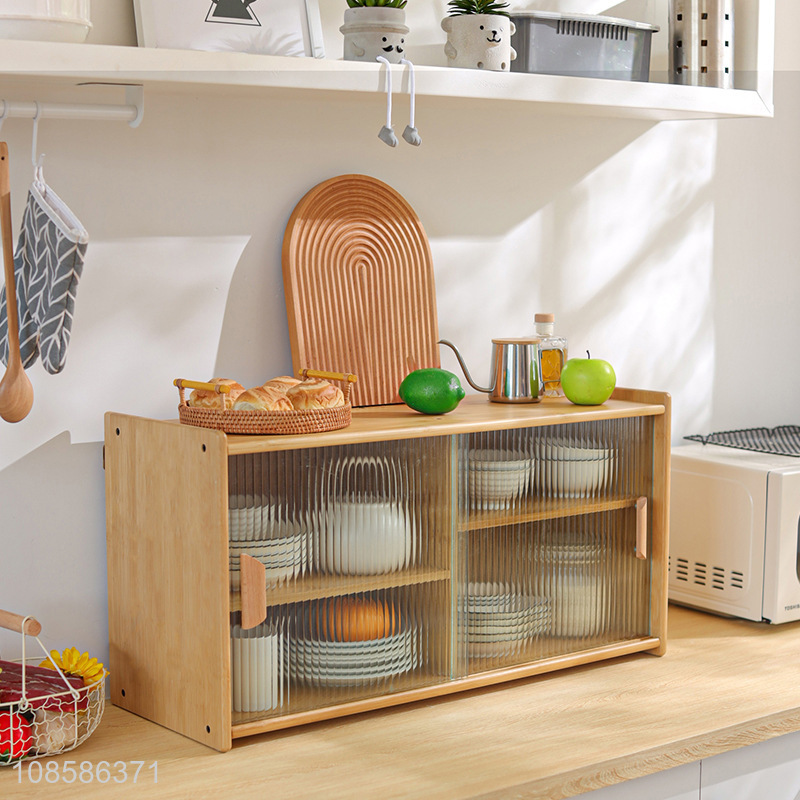 Factory supply kitchen countertop storage cabinet glass bamboo tea cabinet