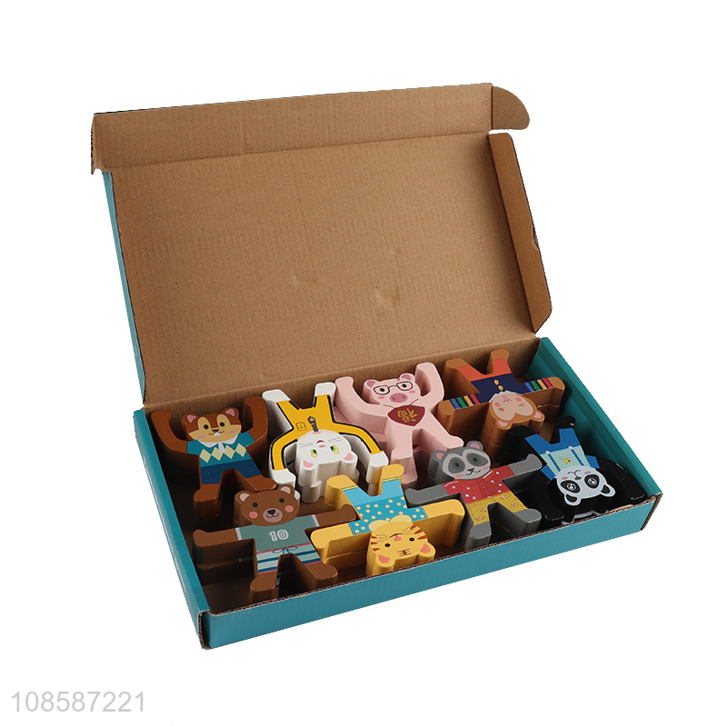 Wholesale kids educational toy wooden blocks animal stacking toy