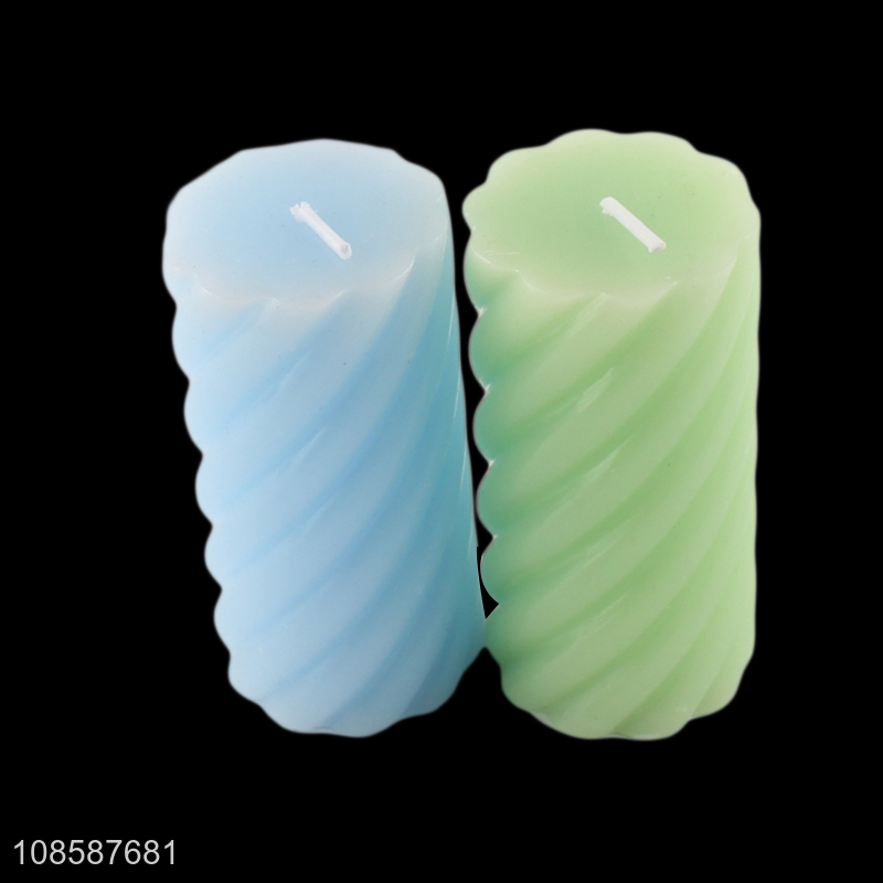 Wholesale colored spiral pillar candle unscented paraffin wax candle