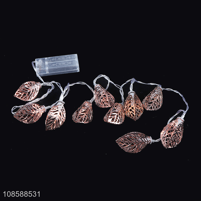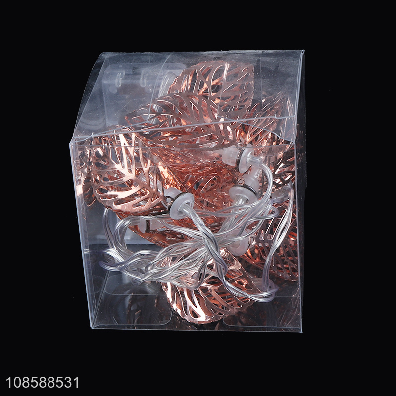 Wholesale home decor AA battery operated rose gold 3D metal leaf led string light