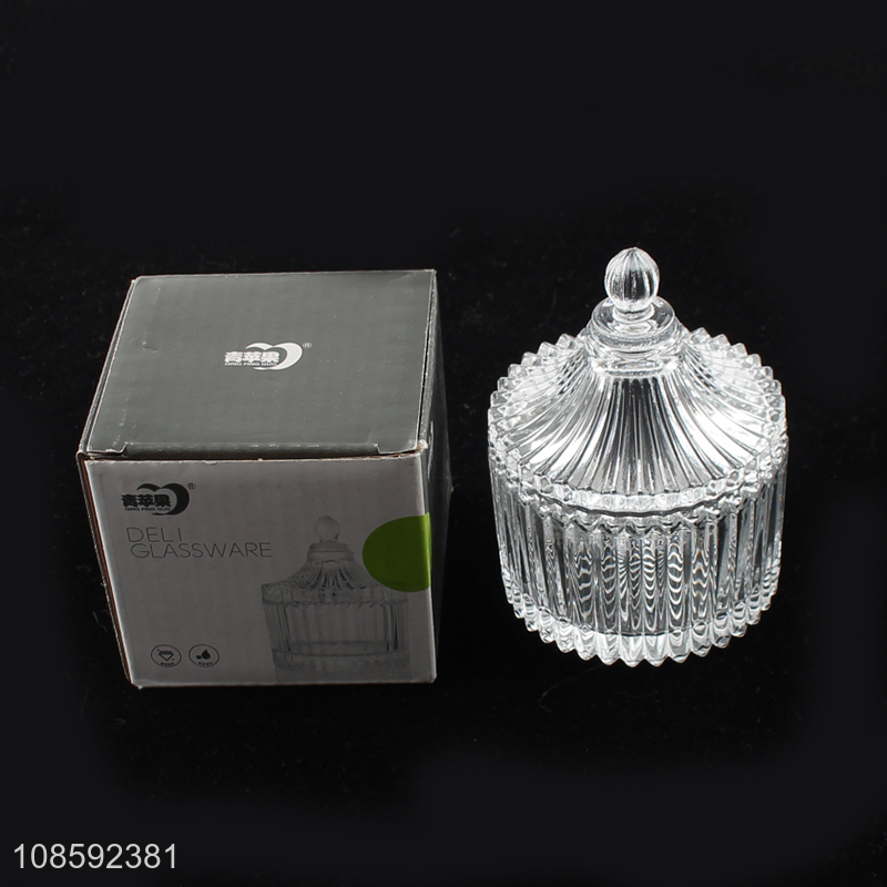 Hot selling clear glass candle jar sugar jar with lid