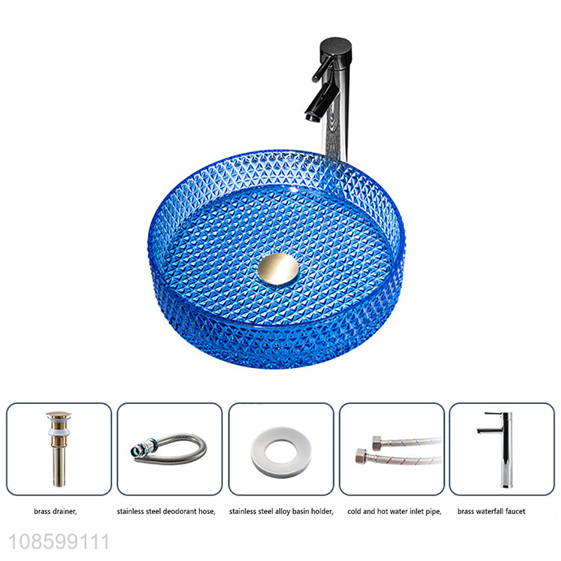 Wholesale colored glass bathroom vessel sink with faucet and drain
