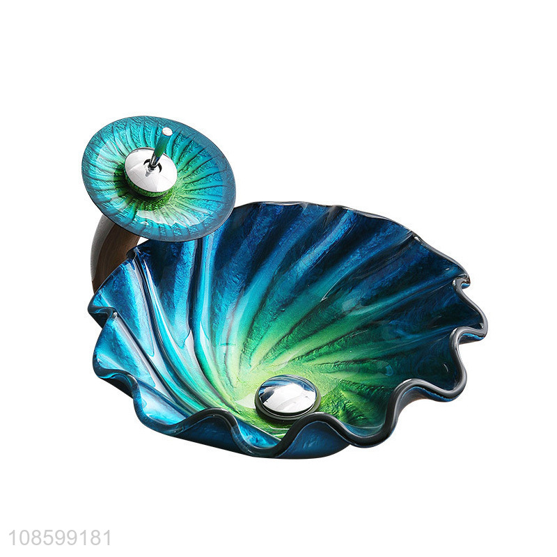 New product flower shaped glass wash basin artistic vessel sink set
