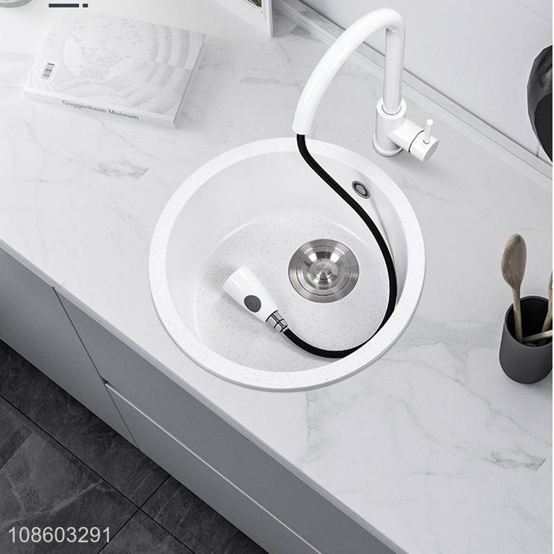 Wholesale round single bowl quartz stone kitchen sink with pull-out faucet
