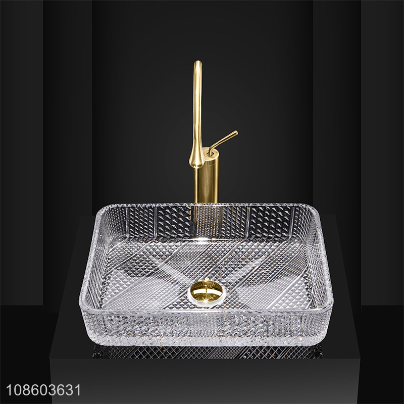 Wholesale clear glass bathroom sink above counter wash sink set