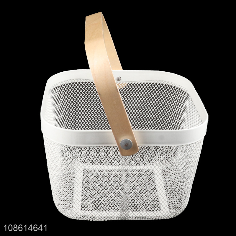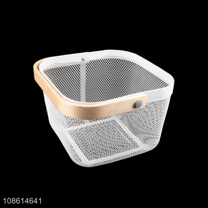Yiwu factory metal hollow storage basket with bamboo handle