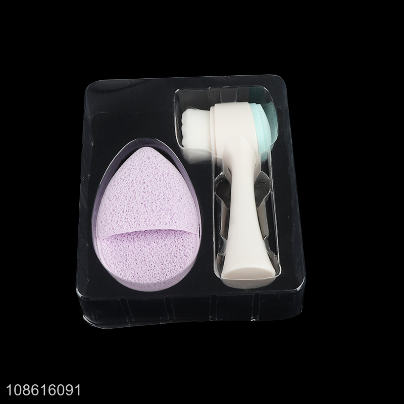 Hot selling silicone facial cleansing brush set with facial sponge