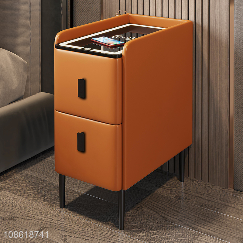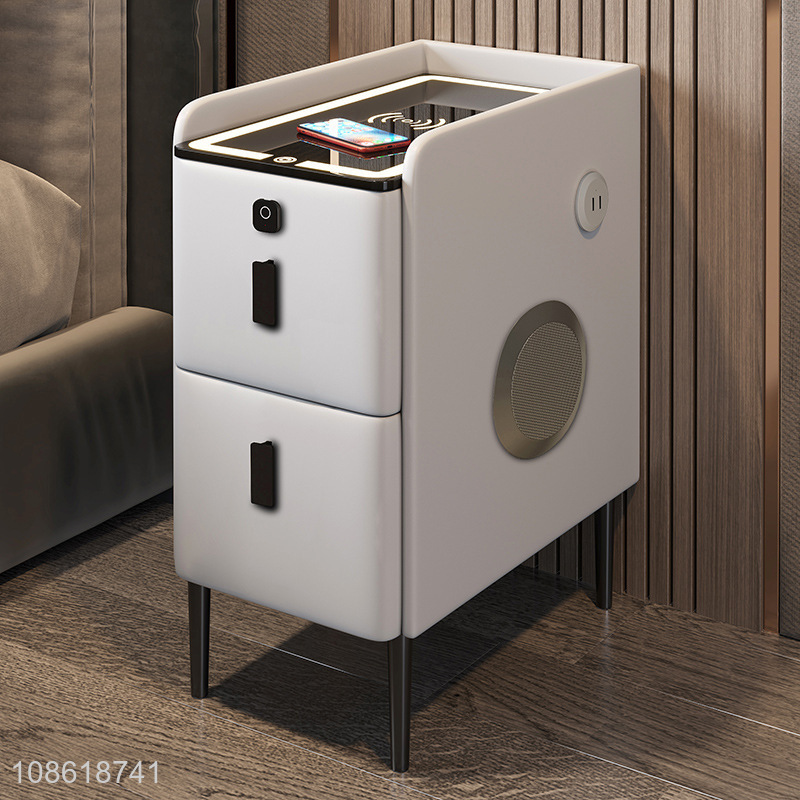 China products intelligent high-end leather nightstand bedside table
