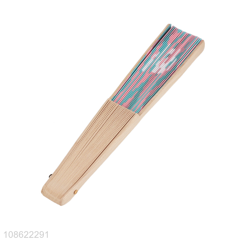 Low price lightweight portable summer wooden folding fan
