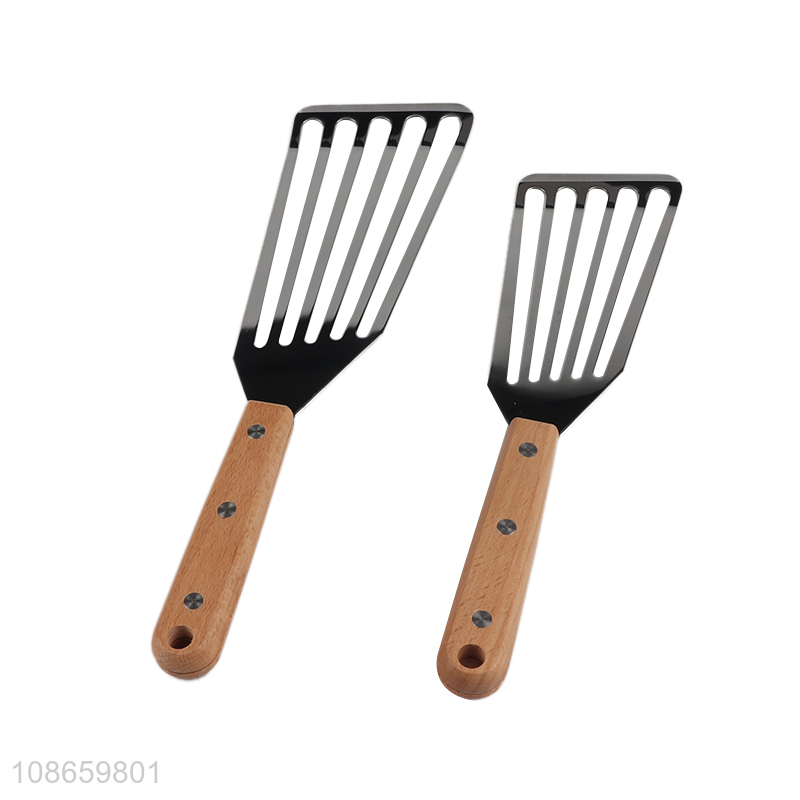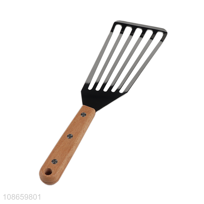 China import wooden handle stainless steel cooking spatula slotted turner