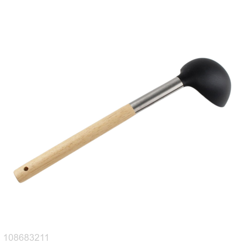 Factory direct sale nylon cooking tool nylon soup ladle with wooden handle
