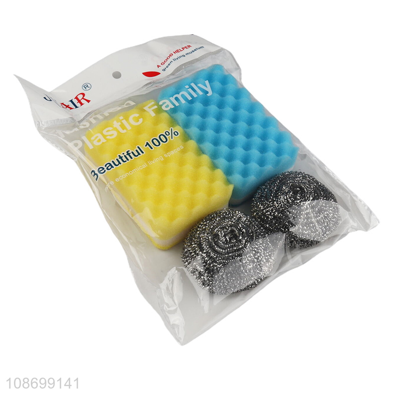 Wholesale heavy duty cleaning ball and scrubbing sponge set for dishwashing