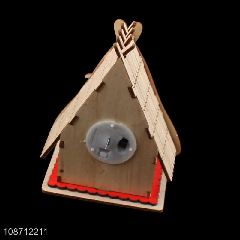 Hot selling wooden Christmas house with led light for tabletop decor