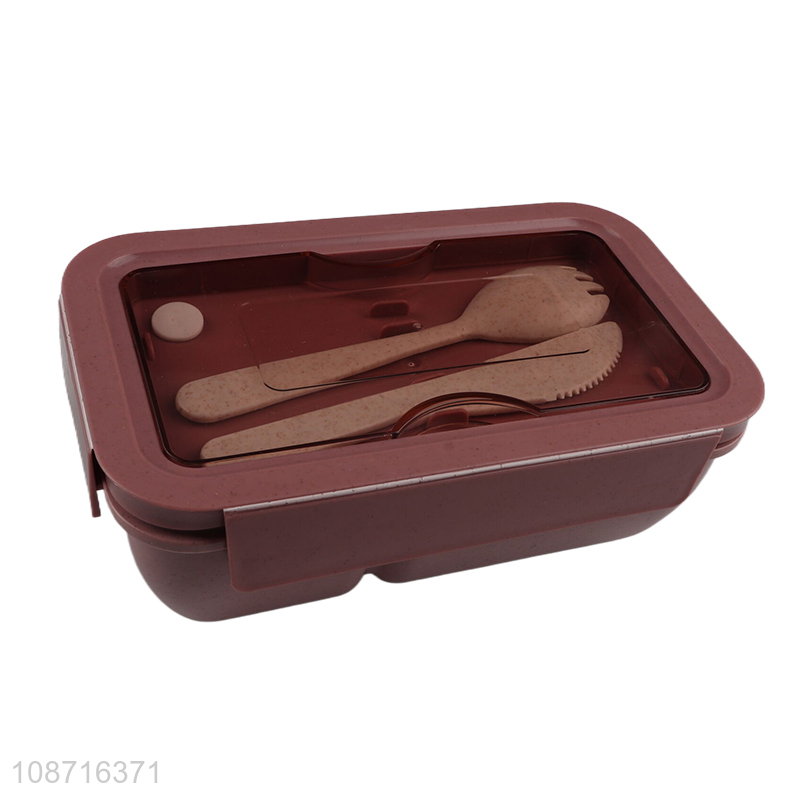 Wholesale 2-compartment wheat straw meal pre lunch box with spoon & fork