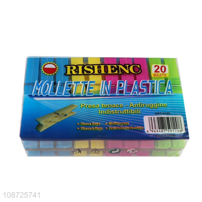 Wholesale 20pcs plastic clothespins drying line pegs for outdoor
