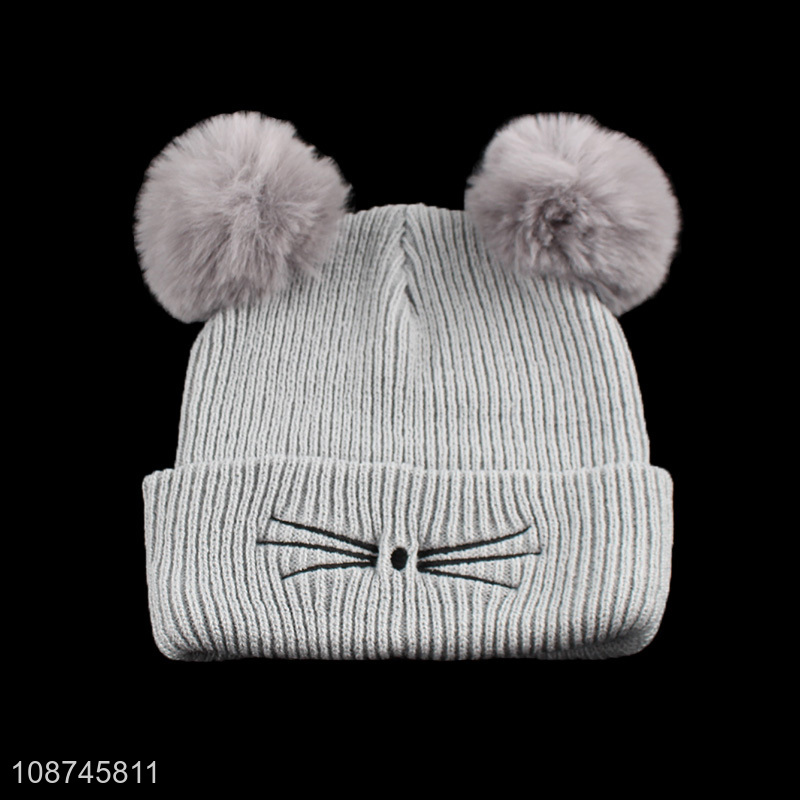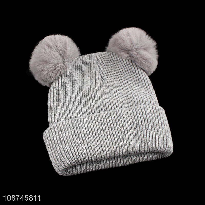 High quality women winter knitted beanie hat with double pompom