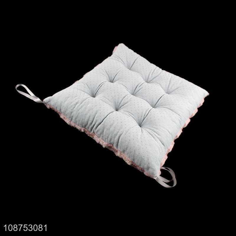 Hot selling fluffy check pattern plush chair pad seat cushion with ties