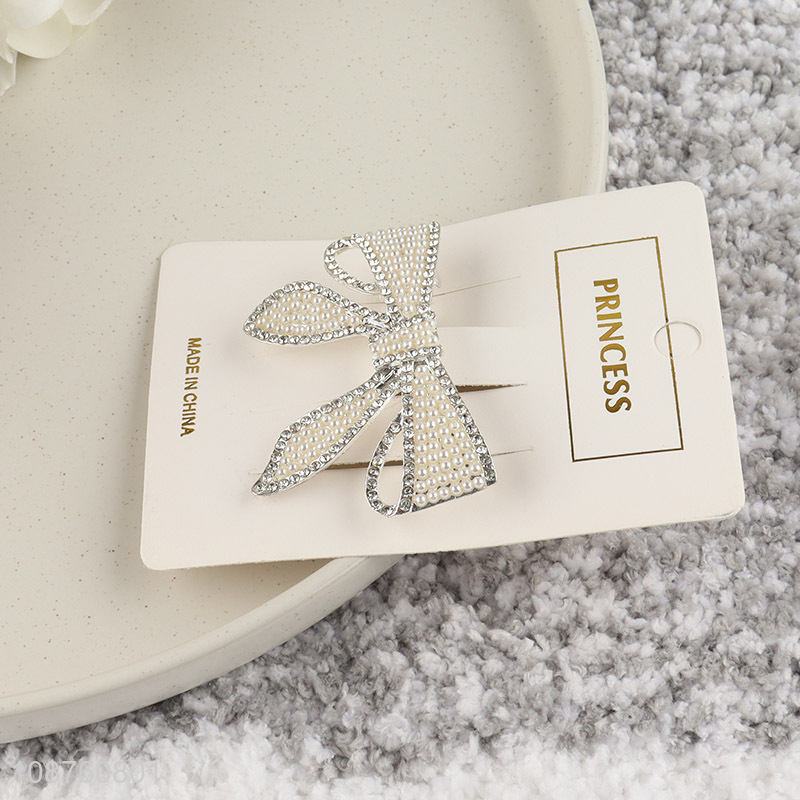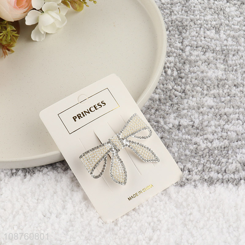 Hot selling luxury pearl rhinestone bowknot hair clip for women