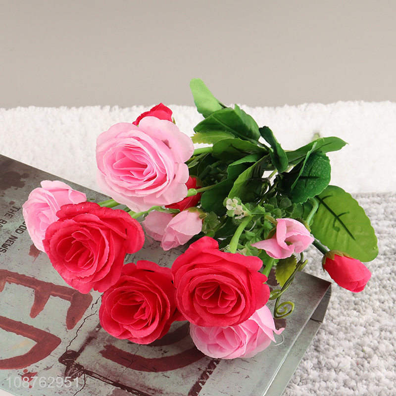 Hot sale 6 heads artificial flower lifelike rose fake bouquet for decor