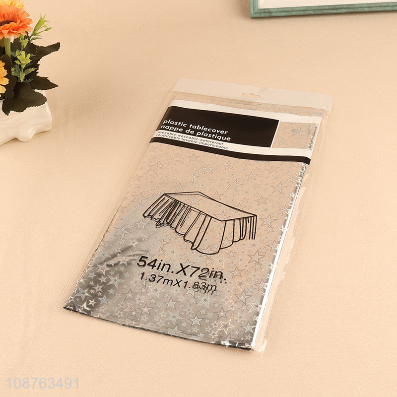 Hot sale party supplies laser star table cloth plastic table cover