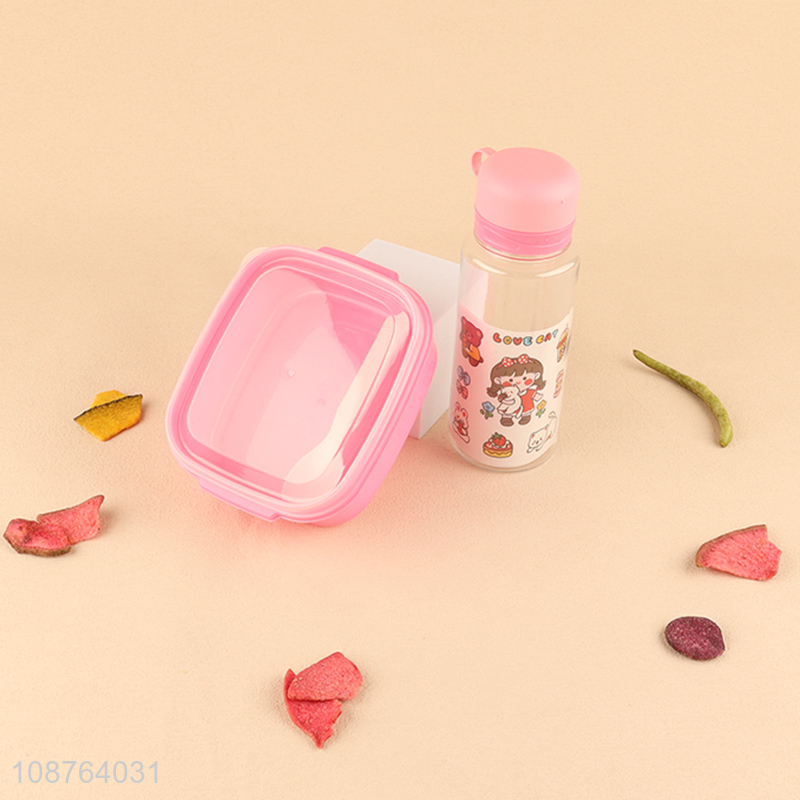Best selling plastic pink girls lunch box and water bottle set