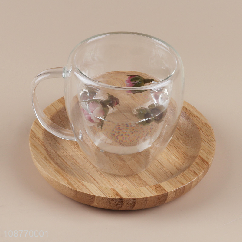 Low price double-wall glass water cup with handle