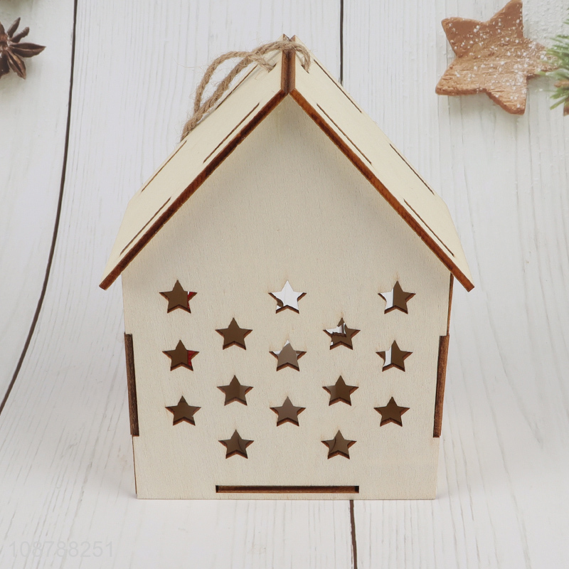 Hot selling led light wooden Christmas house hanging ornament