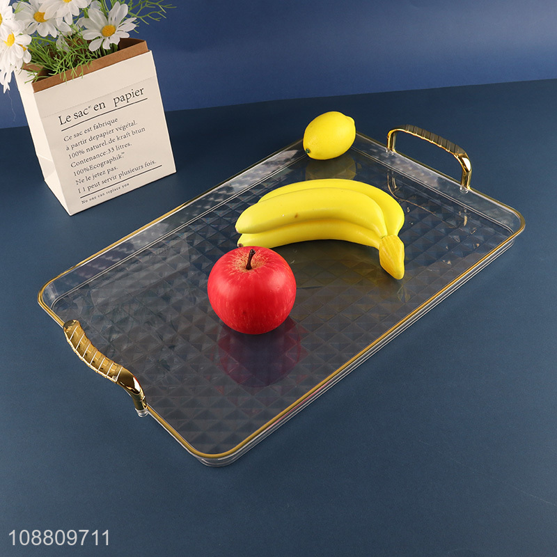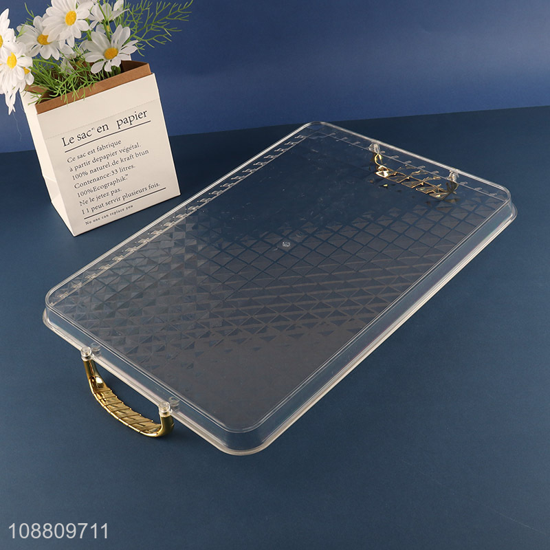 New product clear plastic food serving tray with gold handles