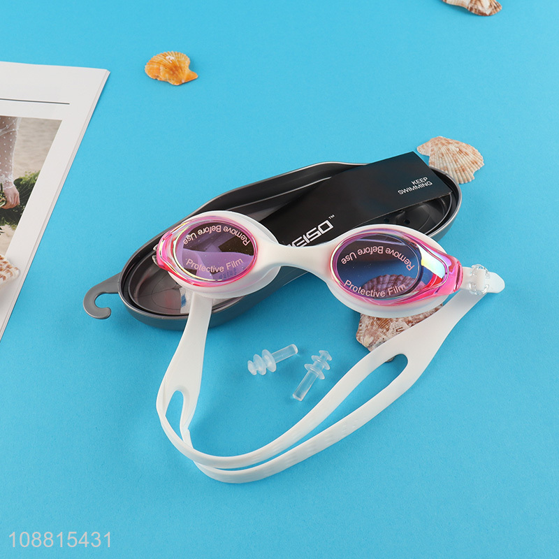 Hot product adjustable anti-fog swim goggles with earplugs