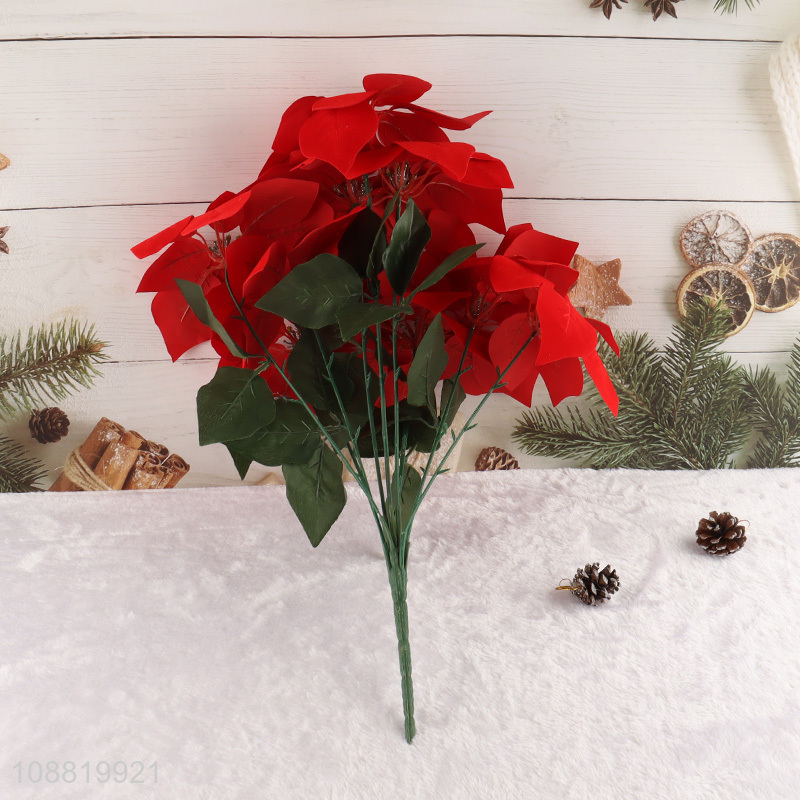 Hot selling 9-branch aritificial poinsettia Christmas flower