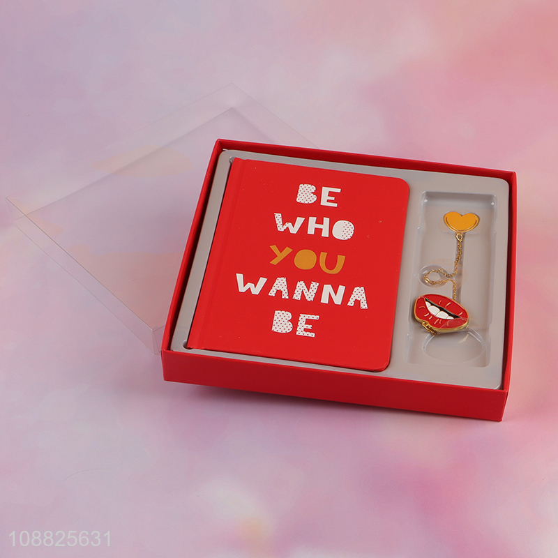 Wholesale 2pcs stationery set with lined notebook & metal lip bookmark