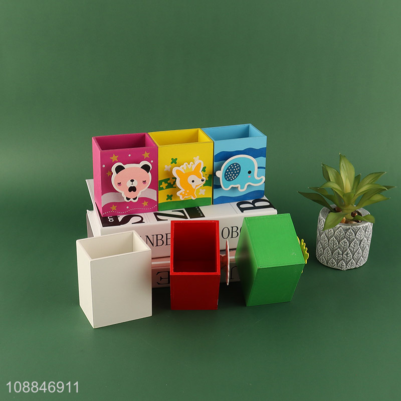 Good selling cartoon wooden stationery pencils pen holder wholesale
