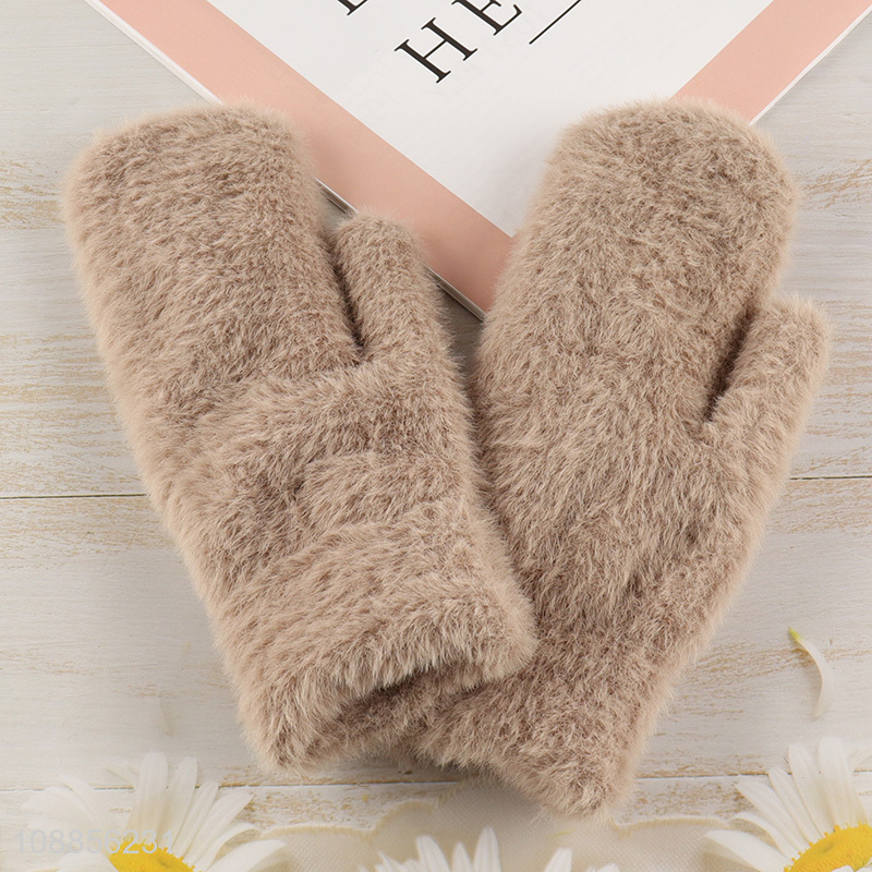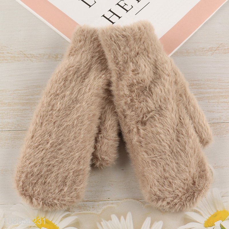 New product winter warm soft fluffy knitted gloves for women men
