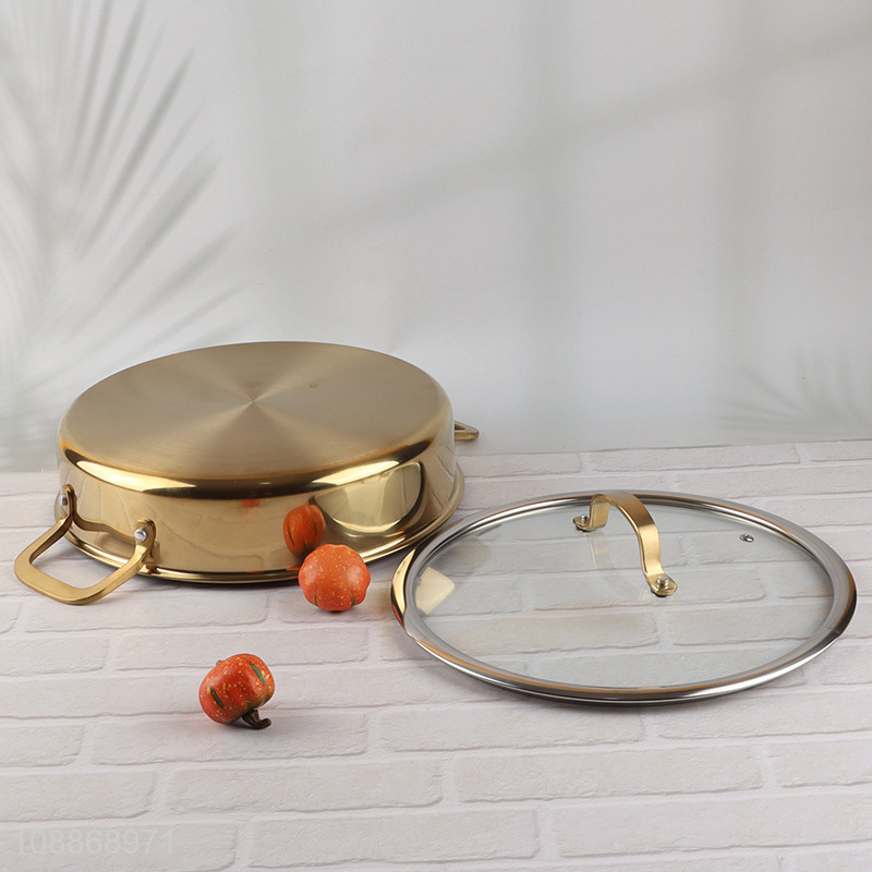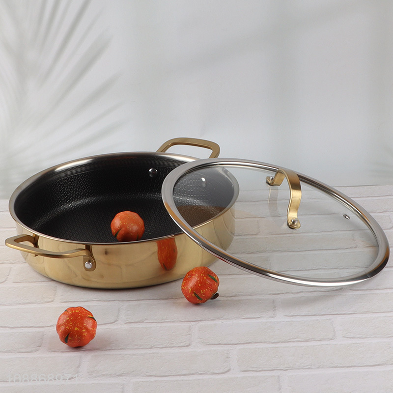 Good quality 2-handle stainless steel nonstick frying pan with glass lid