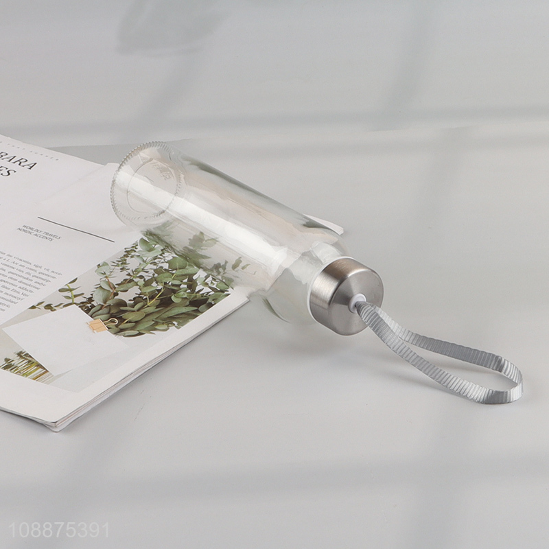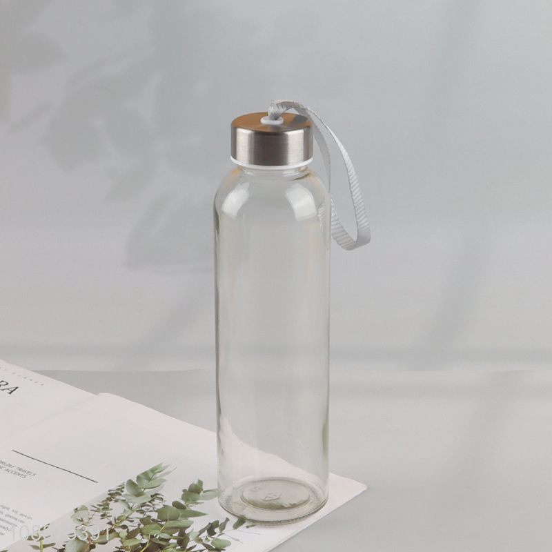 Factory price transparent portable glass water bottle with leakproof lid