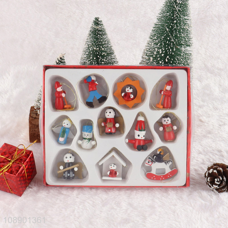 Good Quality 12PCS Mini Wooden Christmas Tree Ornaments Xmas Gift Tags