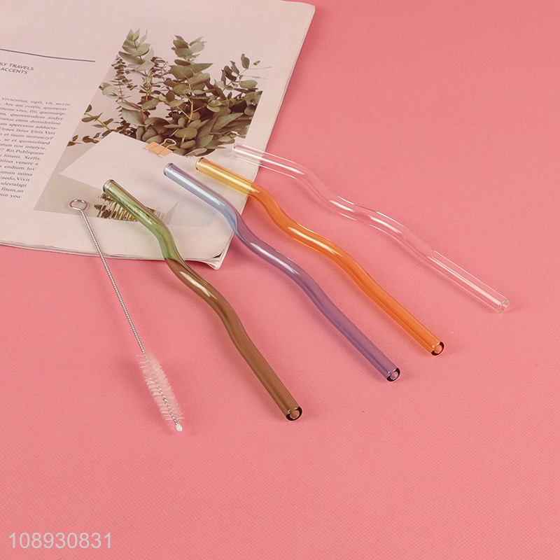 Wholesale 4+1 Wavy Glass Straws Colorful Reusable Drinking Straws