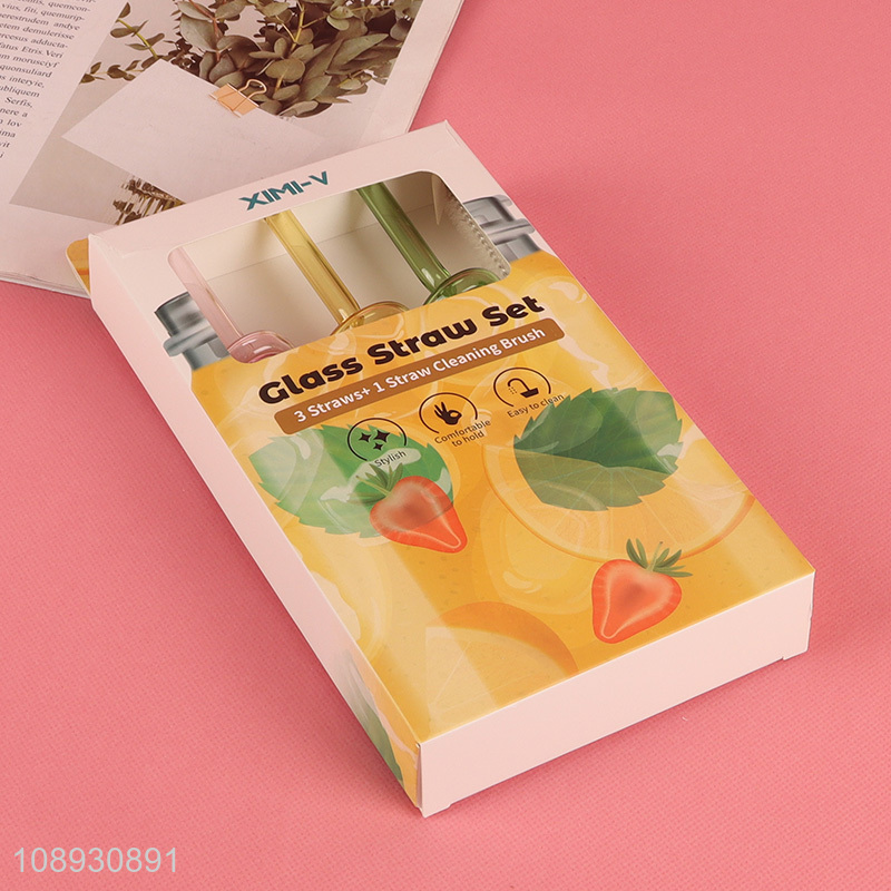 New Product 3+1 Colorful Twisty Glass Straws for Coffee Beverages