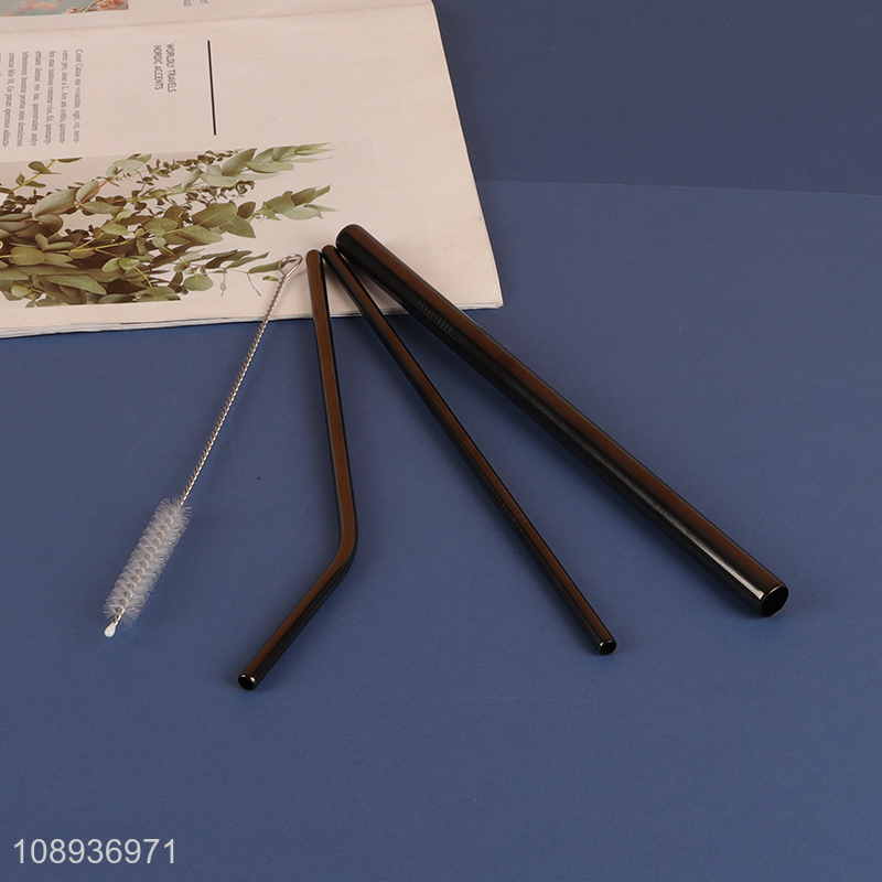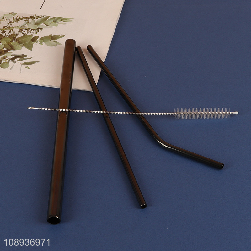 Wholesale 3+1 Black Reusable Stainless Steel Straws with Cleaning Brush