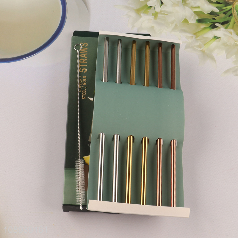 Hot sale 6pcs reusable stainless steel drinking straw