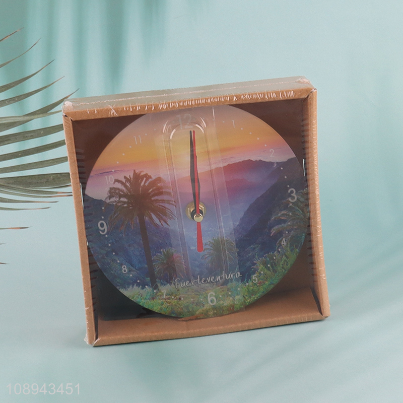 Low price round glass home decor desktop clock tabletop clock