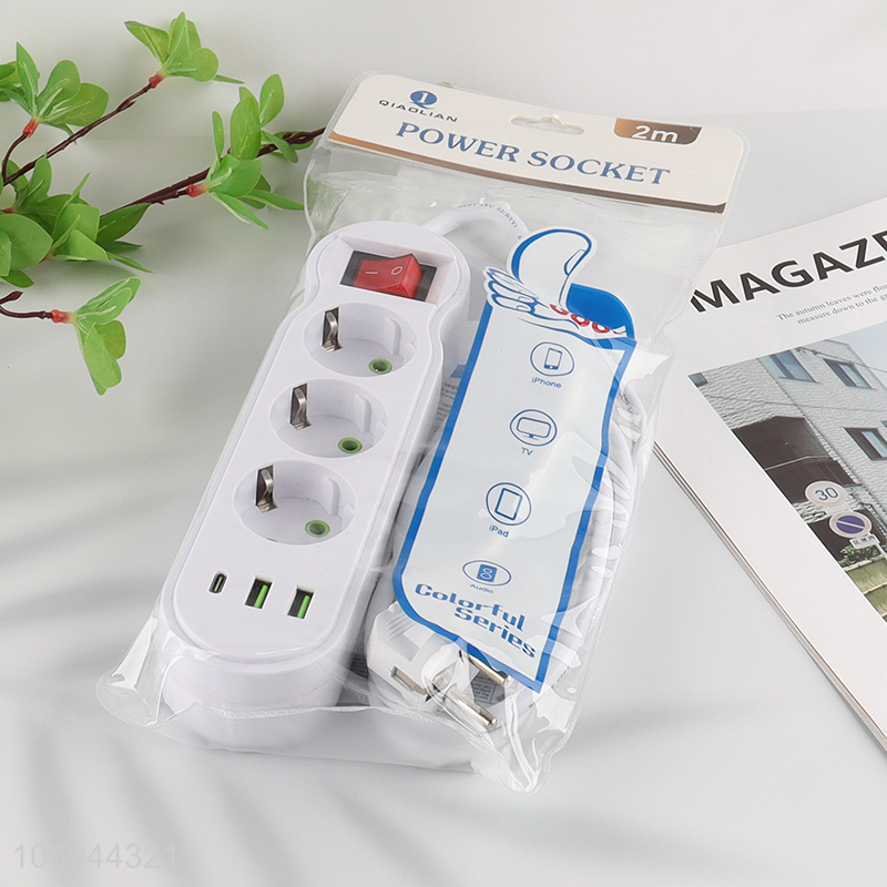 Factory Supply EU Extension Socket Power Strip with 2 USB Charging Ports