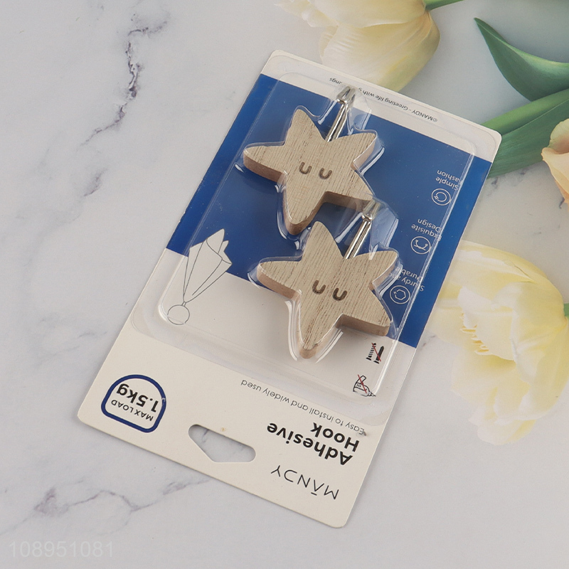 New Product 2PCS Starfish Shape Wooden Sticky Hooks for Hanging