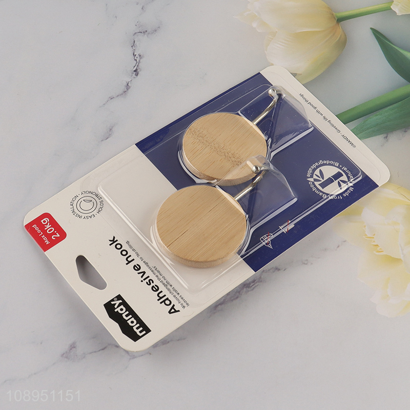 Wholesale 2PCS Round Bamboo Sticky Hooks Adhesive Wll Mounted Hooks