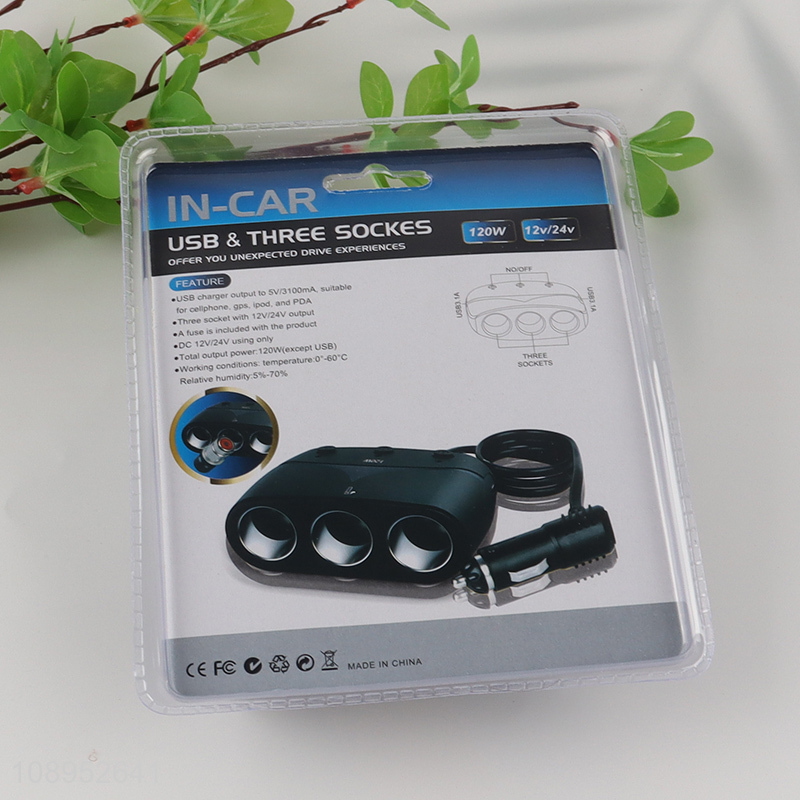 Good Quality 120W 3 Socket Cigarette Lighter Plug Splitter Car Charger Adapter